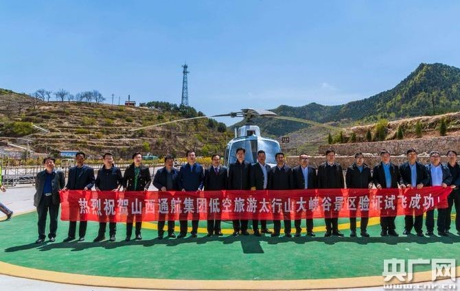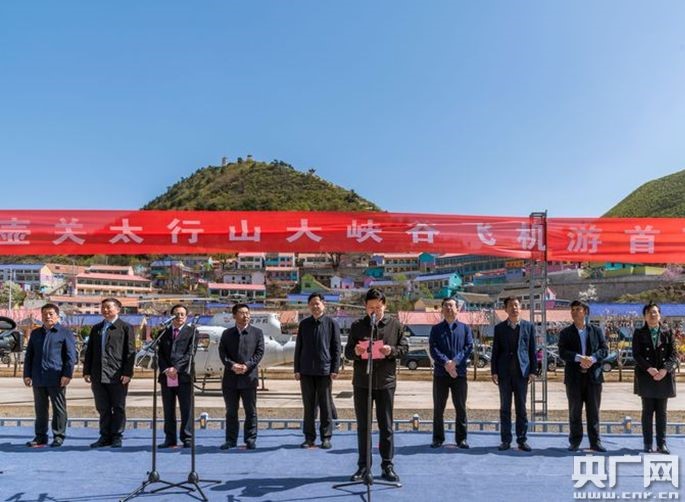 4月29日上午,山西長治壺關太行山大峽谷飛機游“首飛”儀式在壺關縣石坡鄉南坪頭塢村隆重舉行。